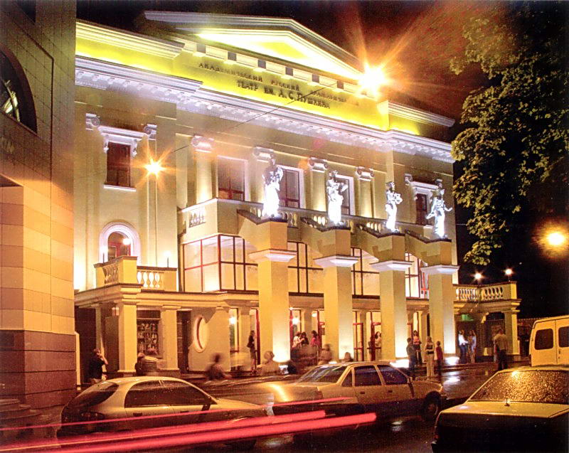 Театр (№ 11) Розмір зображення: 800:637 піксел Нині – Академічний театр російської драми ім.О.С.Пушкіна. Вкладені елементи Ситуаційний план 2004 р. Головний фасад