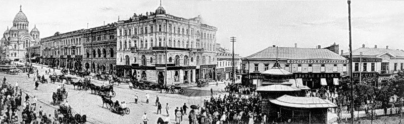 Зліва – церква. св.Миколи. Праворуч від неї – квартал між вул.Короленка і Московським проспектом. Початок цього проспекту – в центрі кадра.