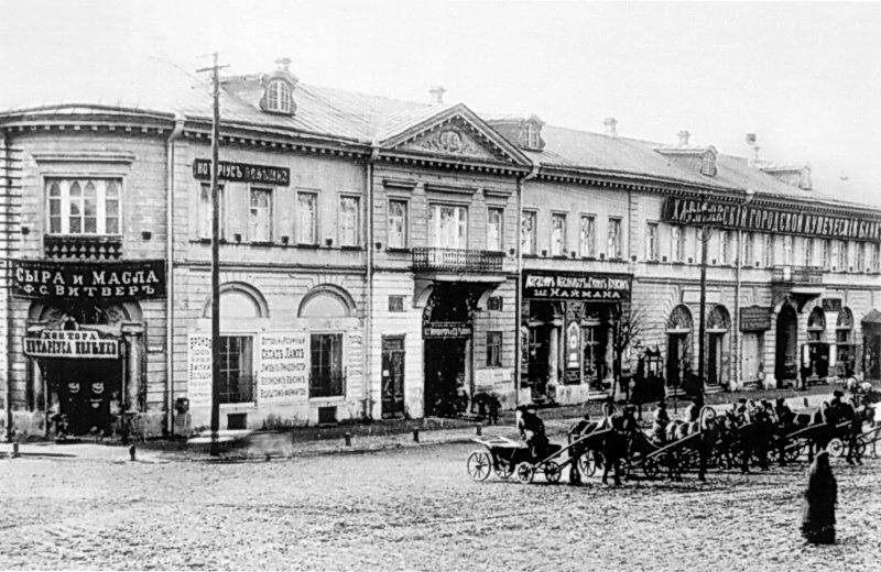 Будинок купця Ломакіна на розі Торгової площі та Плетньовського провулка. Тут знаходився Міський купецький банк.