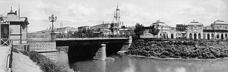 [Поч. 20 ст.] Панорама р.Лопань і площі з південного заходуРозмір зображення: 800:255 піксел Джерело: Прогулки по Харькову. – Харьков: 2004 г., с. 112. |