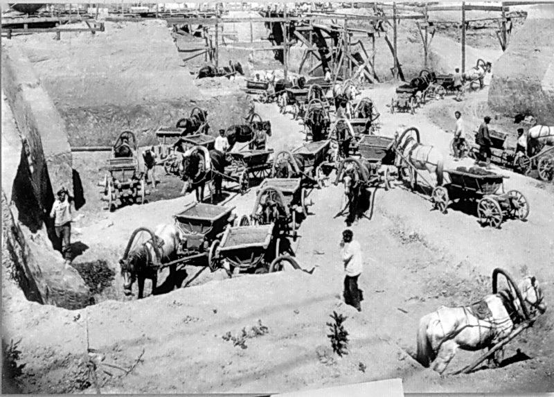 1925 р. Копання котловануРозмір зображення: 800:573 піксел Джерело: Прогулки по Харькову. – Харьков: 2004 г., с. 154. |