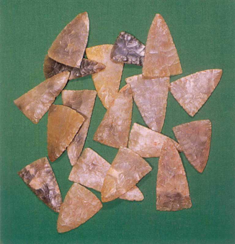 Крем’яні наконечники дротиків середньостогівської культури (V тис. до н. е., Гончаровський скарб, Сіверський Донець).