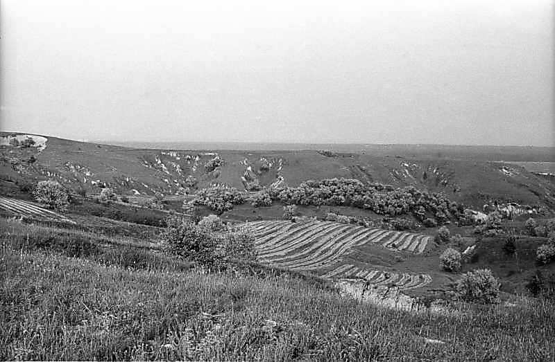 1982 р. Краєвид біля ХодосівкиРозмір зображення: 800:523 піксел 1982 р. Травень. Фото М.І.Жарких. Негатека, № 175-34. |