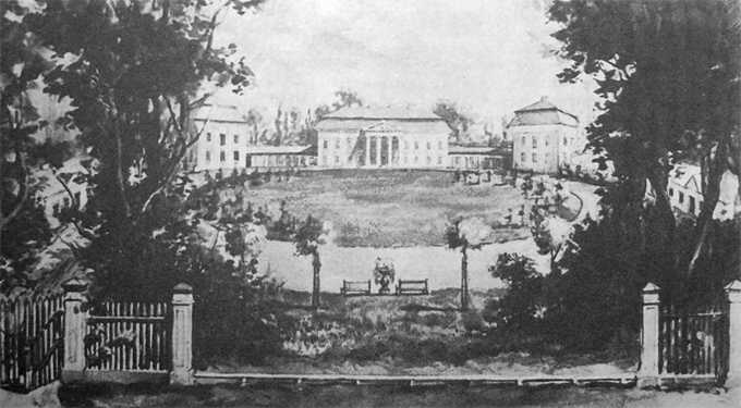 Холонівський палац на Волині (Горохівський район). Малюнок невідомого автора на зламі ХІХ-ХХ століть. Палац був повністю знищений австрійськими військами в часи Першої світової війни (1914-1918).