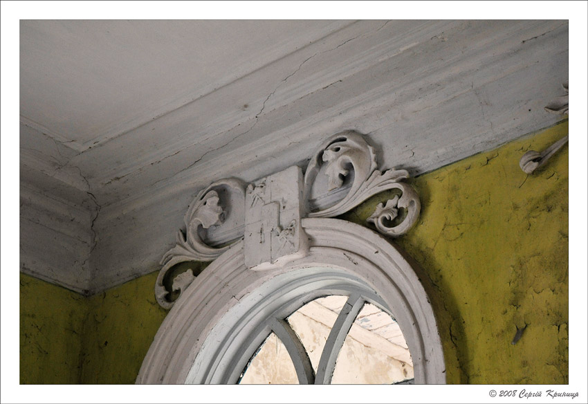 Герб над вікном у чільній стініРозмір зображення: 850:584 піксел Фото: Сергій Криниця. Опубліковано 23.03.2009 р.