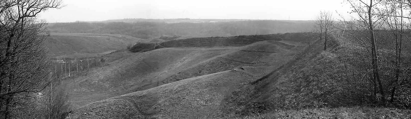 1977 р. Панорама північної частини городища із заходуРозмір зображення: 1677:486 піксел 1977 р. 28 березня. Фото М.І.Жарких. Негатека, № A243-07 – 9. |