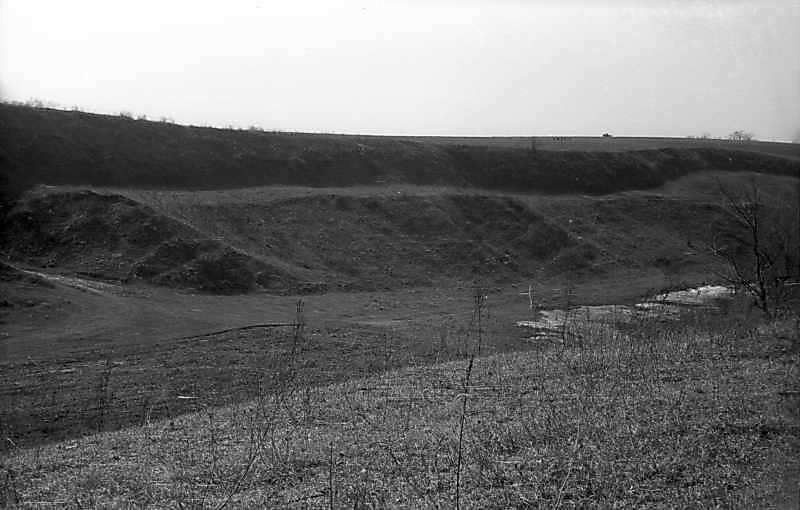 1977 р. Північний ескарп городища. Вигляд з півночіРозмір зображення: 800:510 піксел 1977 р. 28 березня. Фото М.І.Жарких. Негатека, № A243-20. |