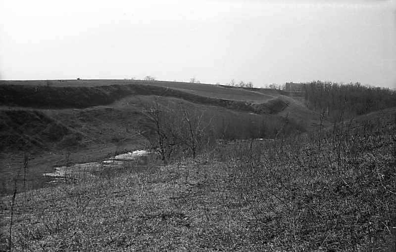 1977 р. Північний ескарп городища. Вигляд з північного сходуРозмір зображення: 800:510 піксел 1977 р. 28 березня. Фото М.І.Жарких. Негатека, № A243-21. |