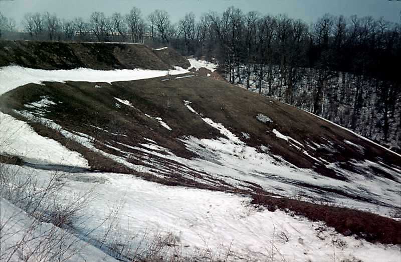 1978 р. Ескарп Хотівського городища. Вигляд зі сходуРозмір зображення: 800:524 піксел 1978 р. 15 березня. Фото М.І.Жарких. Слайдотека. |