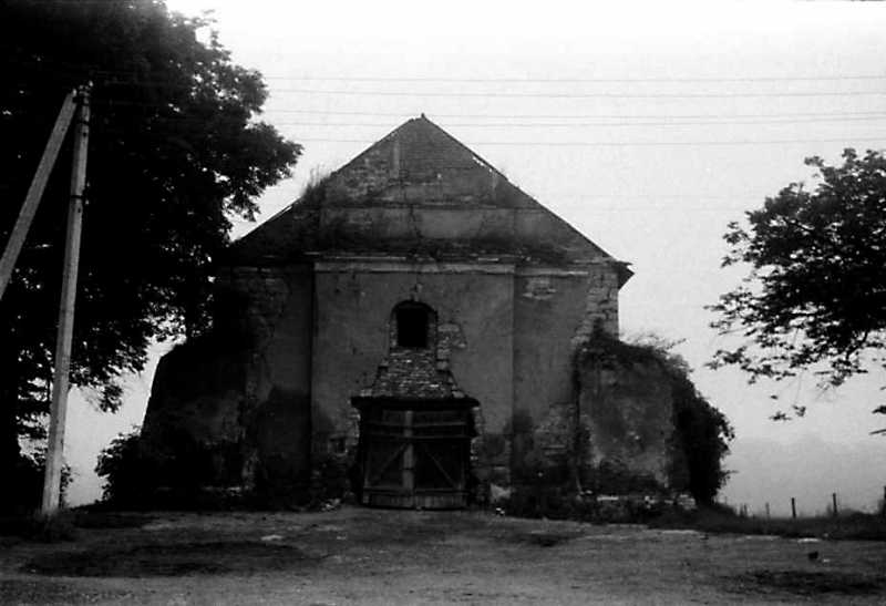 КостелРозмір зображення: 800:547 піксел Костел: орієнтація вівтаря 50° на околиці села на головній вулиці (С3). Спостереження М.І.Жарких, 16 серпня 1991 р. |