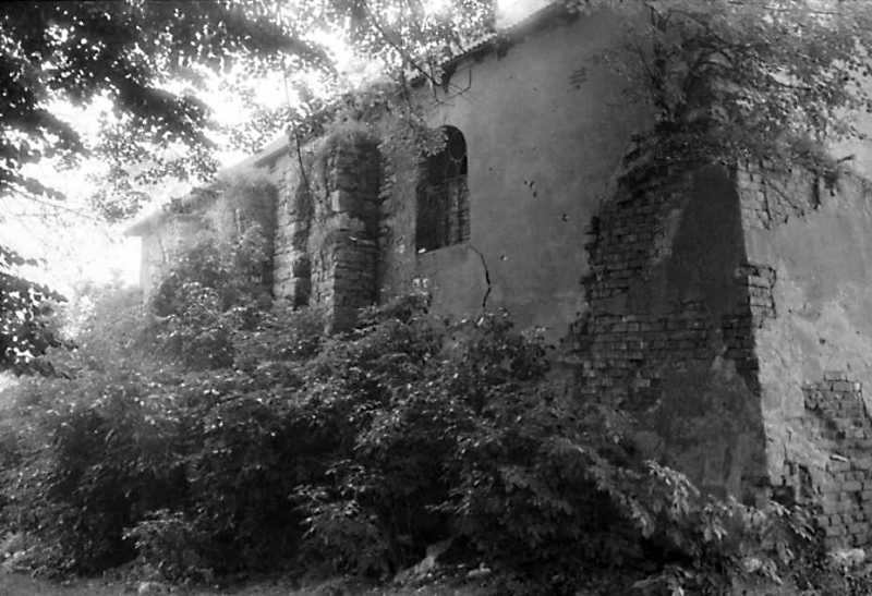 1991 р. Бічний фасад. Вигляд з позиції А4Розмір зображення: 800:547 піксел 1991 р. 16 серпня. Фото М.І.Жарких. Негатека, № 714-23. |