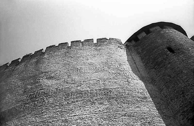 1978 р. Фрагмент західного муру і південно-західна башта. Вигляд із заходу в ракурсіРозмір зображення: 800:520 піксел 1978 р. 22 травня. Фото М.І.Жарких. Негатека, № 052-21. |