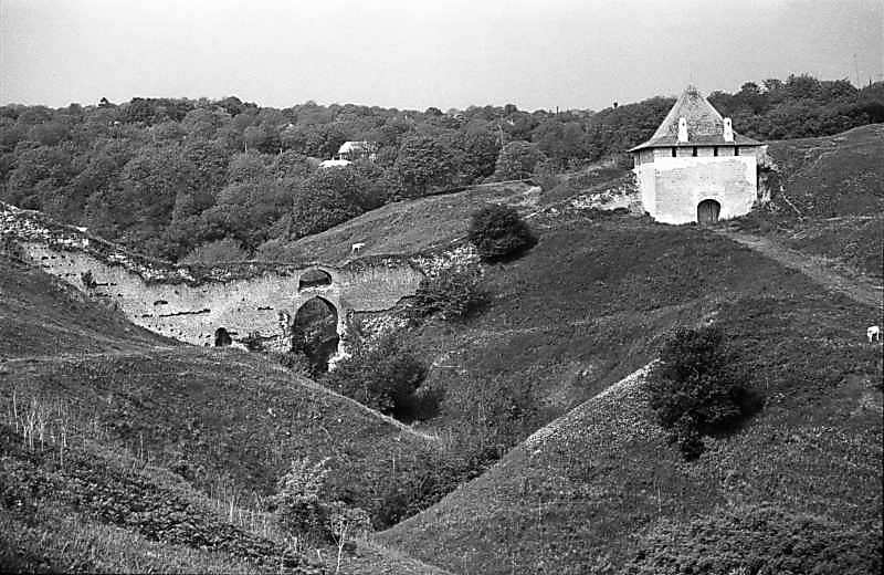 1985 р. Фрагмент західного муру і Яська брама. Вигляд з південного сходуРозмір зображення: 800:520 піксел 1985 р. 18 травня. Фото М.І.Жарких. Негатека, № 284-05. |