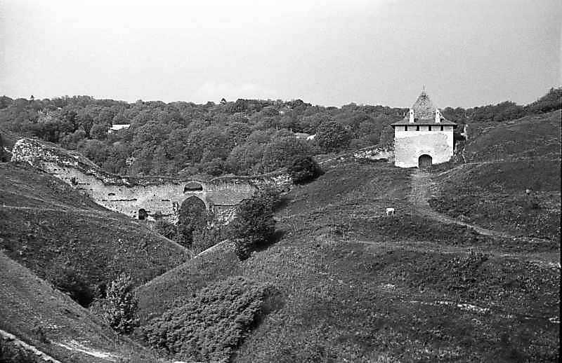 1985 р. Фрагмент західного муру і Яська брама. Вигляд з півдняРозмір зображення: 800:518 піксел 1985 р. 18 травня. Фото М.І.Жарких. Негатека, № 284-21. |
