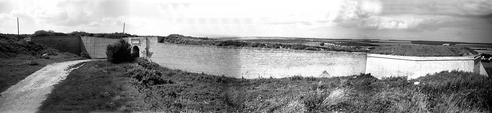 1991 р. Панорама південного фронту фортеці з півдняРозмір зображення: 1600:368 піксел 1991 р. 23 липня. Фото М.І.Жарких. Негатека, № 700-23+6. |