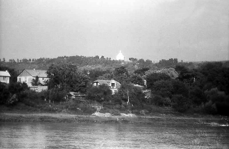 1996 р. Хати в Заліщиках (передній план) та церква в с.Хрещатик (задній план)Розмір зображення: 800:520 піксел 1996 р. 6 серпня. Фото М.І.Жарких. Негатека, № 901-25. |