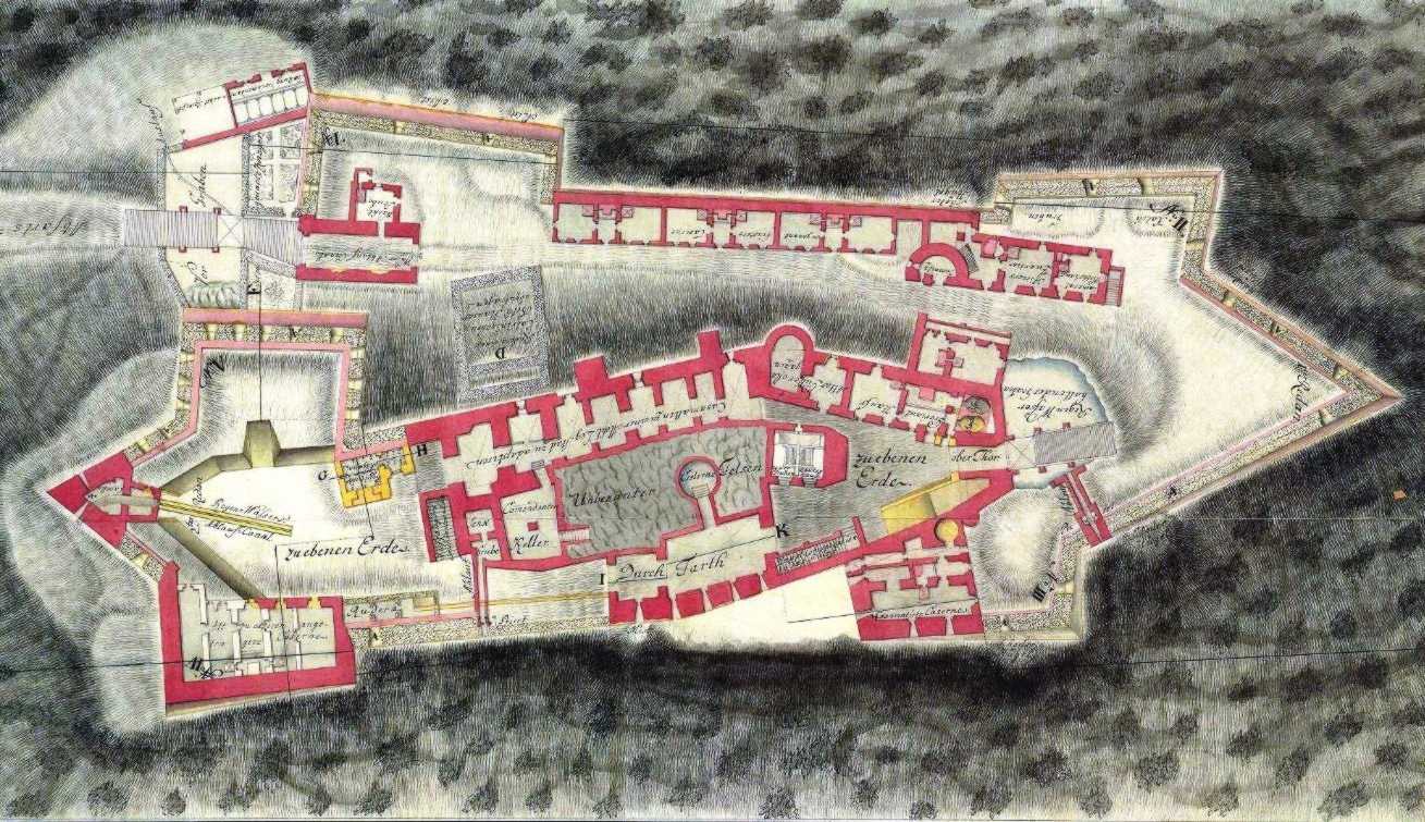 1782..1784 рр. План замку в Хусті Розмір зображення: 1309:755 піксел Креслення з сайту ,опубліковане 8 червня 2024 р. Вище | Наступна сторінка