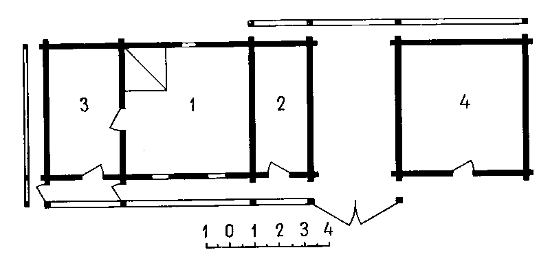 Село Гусный. Хата XIX в.Розмір зображення: 800:380 піксел Джерело: Макушенко П. И. Народная деревянная архитектура Закарпатья (18 – начала 20 века). – Москва: Стройиздат, 1976 г., с. 29. |