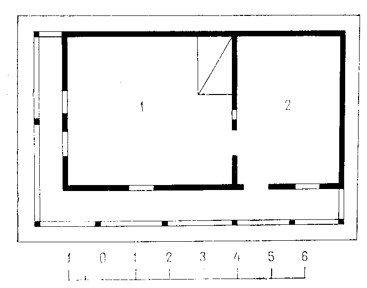 Село Сокирница Хустского района. Хата XIX в.Розмір зображення: 739:579 піксел Джерело: Макушенко П. И. Народная деревянная архитектура Закарпатья (18 – начала 20 века). – Москва: Стройиздат, 1976 г., с. 33. |