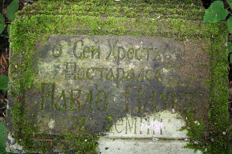 Напис: «О сей хрест постралася Павло Паук з Демні».
