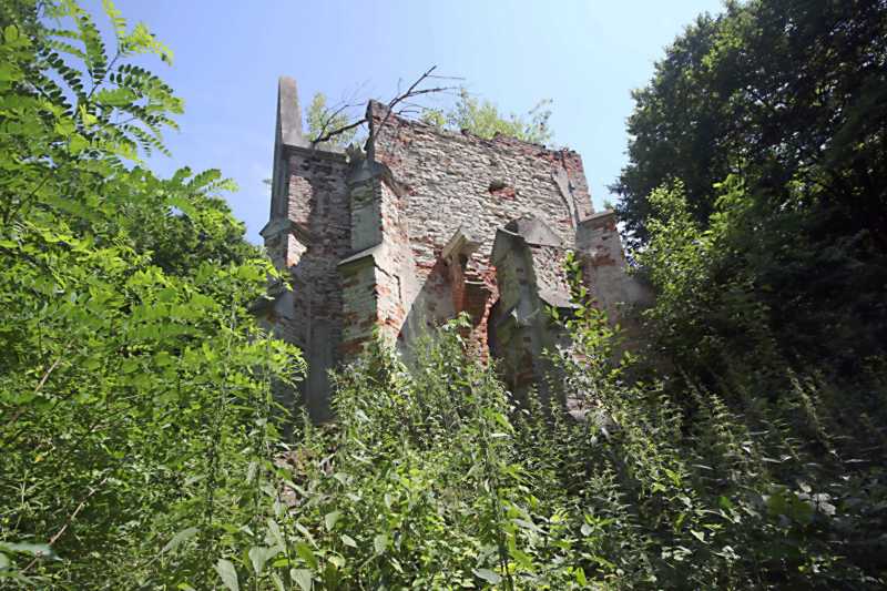 2017 р. Чільний фасад. Вигляд з позиції А4Розмір зображення: 800:533 піксел Фото Зенона Боровця і Богдана Тхора, 28 липня 2017 р. |