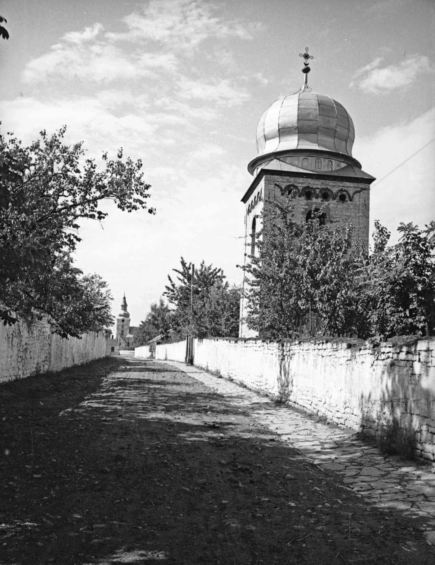 На фото дзвіниця біля церкви Покрови Пресвятої Богородиці в Заліщиках. Змурована у 1930 році Підноситься над муром, який відокремлював територію морелевого саду і церковне подвір’я від міської вулиці.