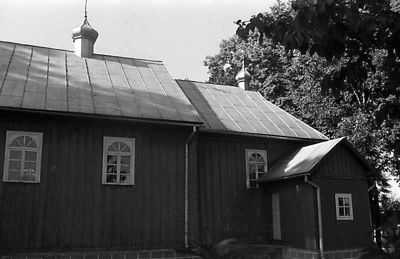 1989 р. Нава і вівтар. Вигляд з півдняРозмір зображення: 800:518 піксел 1989 р. 5 липня. Фото М.І.Жарких. Негатека, № 518-09. |