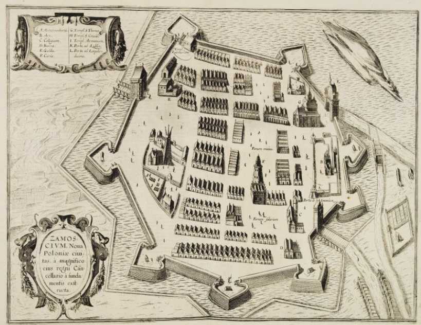 Перспективний план (ведута) Замостя. Гравюра Франца Гогенберга, надрукована Георгом Брауном в Кельні в 1618 р.