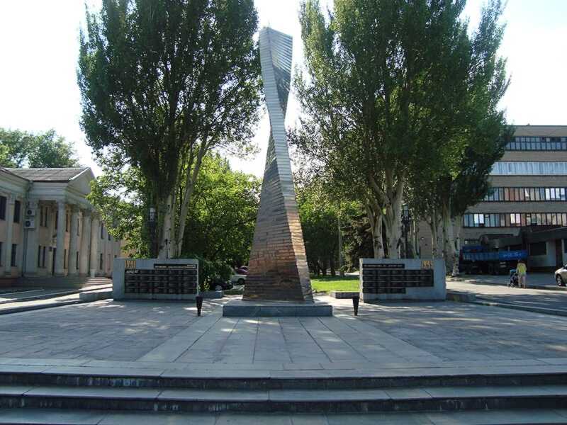 Пам’ятник на честь робітників заводу «Мотор Січ», які загинули під час Другої світової війни, 1995 (іст.). Вул. 8-го Березня, 13 (нині просп. Моторобудівників) / Колективна.
