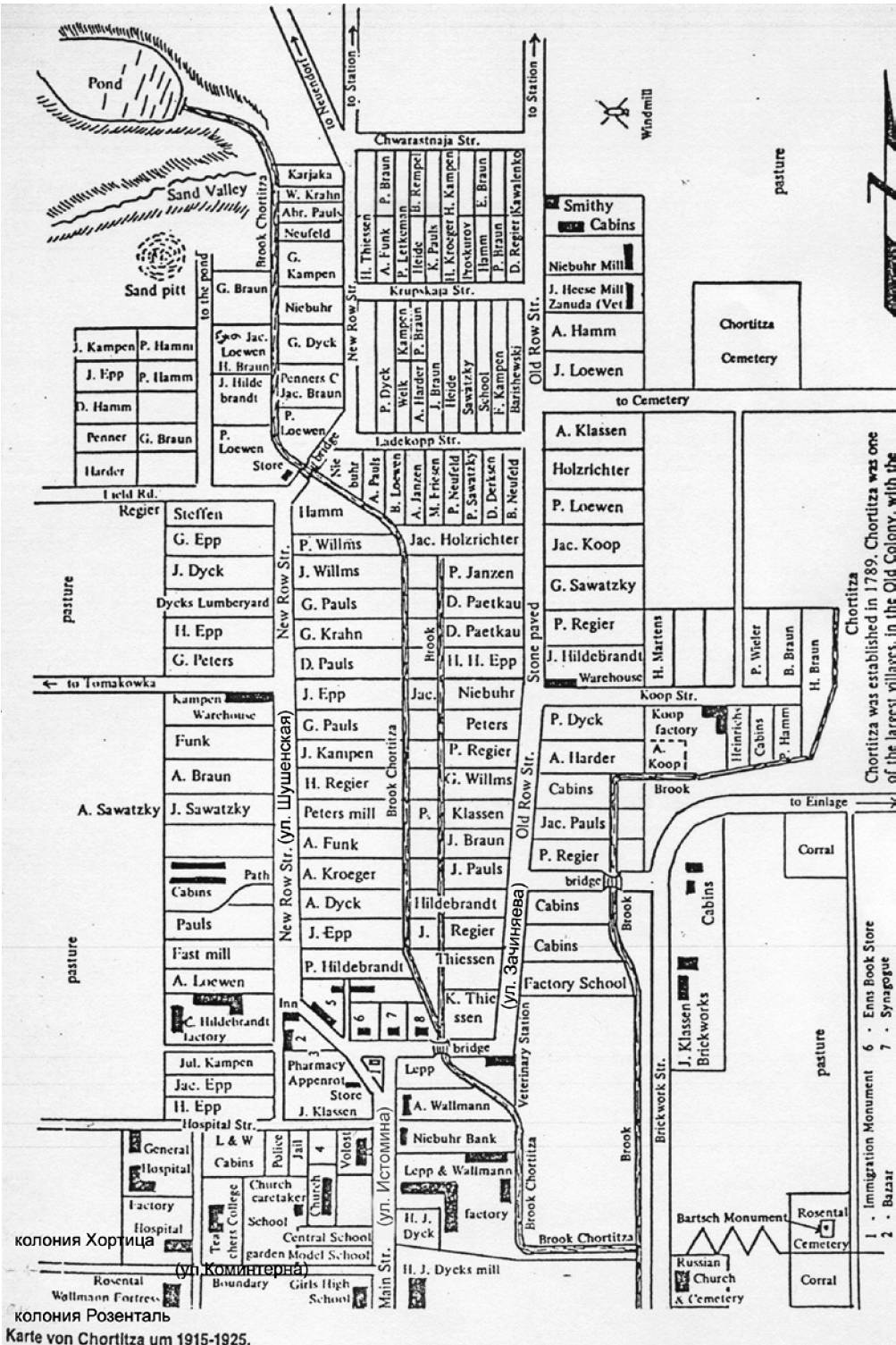 Менонітська колонія Хортиця – Розенталь, 1789 (містобуд.). Вул. Істоміна, вул. Зачиняєва, вул. Шушенська.