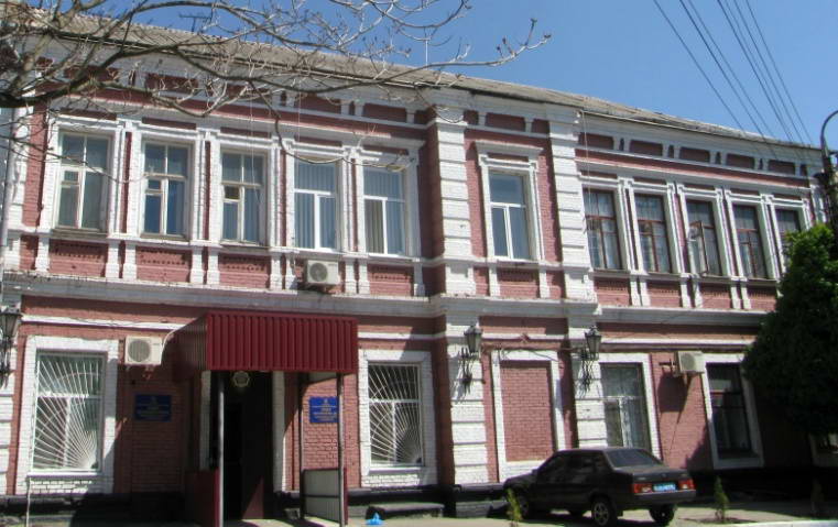 Двоповерховий, цегляний, прямокутний у плані, дах чотирисхилий під шифером. Композиція головного фасаду центральноосьова. Головна вісь виділена рустованими пілястрами. Пластичне рішення фасадів витримане у цегляному стилі. Вікна прямокутні, обрамлені ліпними наличниками, поличками та фільонками. Фасад завершується профільованим карнизом на кронштейнах. Тепер тут розміщується управління МВС Жовтневого району.