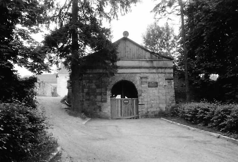 1991 р. Брама Розмір зображення: 800:545 піксел 1991 р. 21 серпня. Фото М.І.Жарких. Негатека, № 737-38. Вкладені елементи Фрагмент чільного фасаду