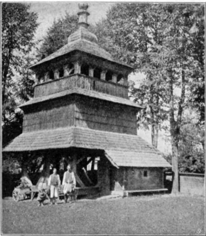 Дзвіниця XVIII віку, с. Збора, пов. Калуш, ГаличинаРозмір зображення: 698:800 піксел Джерело: Українське мистецтво. І. Деревляне будівництво і різьба на дереві / В.Щербаківський. – Льв.: 1913 р., № 38. |