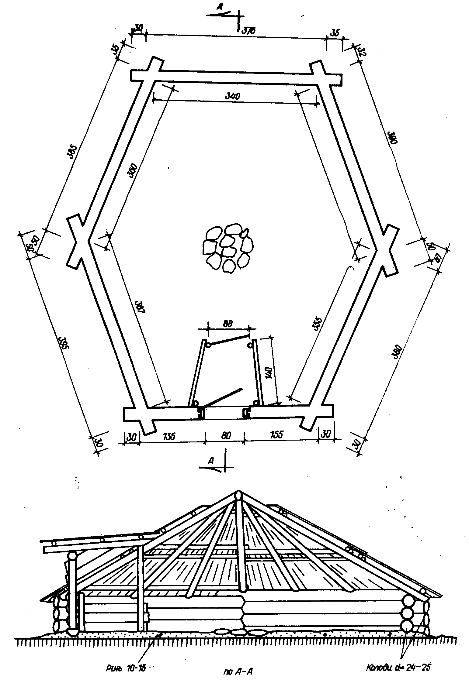 Колиба лісорубів над потоком Погорілець в Чорногорі. План і розріз