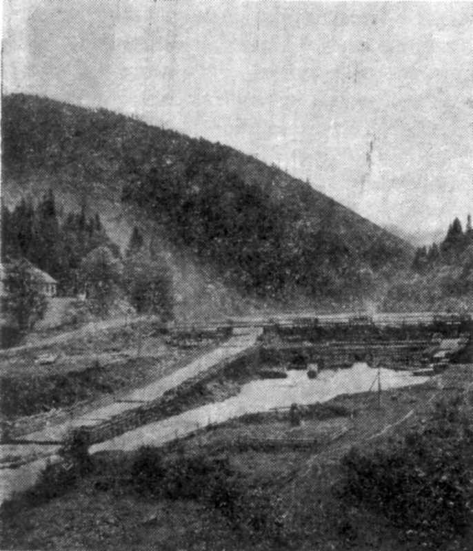 Гребля-«гамачка» на річці Чорний ЧеремошРозмір зображення: 686:800 піксел Гребля-«гамачка» на річці Чорний Черемош. Джерело: Народна архітектура українських Карпат. – К.: Наукова думка, 1987 р., с. 168. |