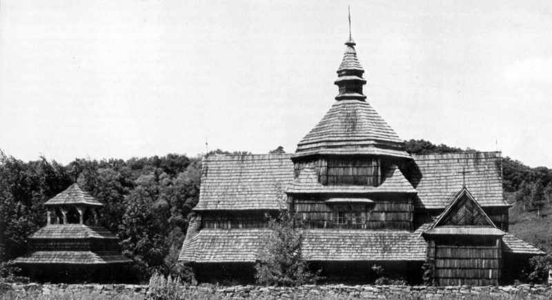 [1987 р.] Загальний вигляд з позиції С2Розмір зображення: 800:435 піксел Джерело: Titus D. Hewryk Masterpieces in wood: houses of worship in Ukraine. – New York, 1987, № 78. |
