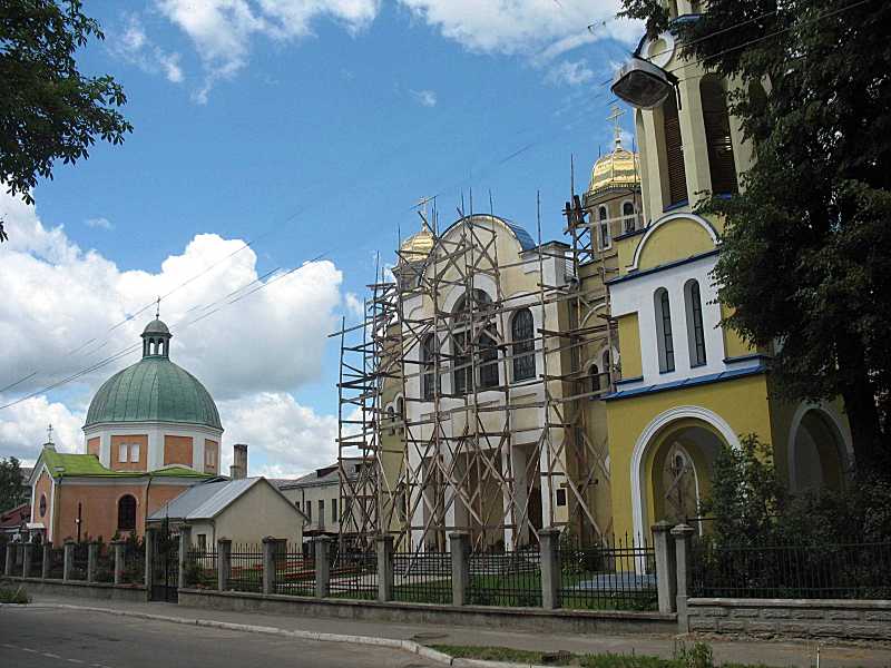 2011 р. Костел св. Лазаря та церква св. Петра і ПавлаРозмір зображення: 800:600 піксел Костел – ліворуч, церква – праворуч. Вигляд з південного сходу. Фото Зенона Боровця і Богдана Тхора, 27 червня 2011 р. |
