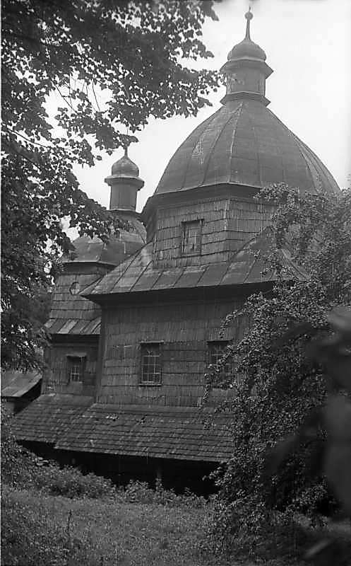1977 р. Вівтар і нава. Вигляд з з північого заходу 1977 р. 23 липня. Фото М.І.Жарких. Негатека, № A335-23. Попередня сторінка | Вище | Наступна сторінка