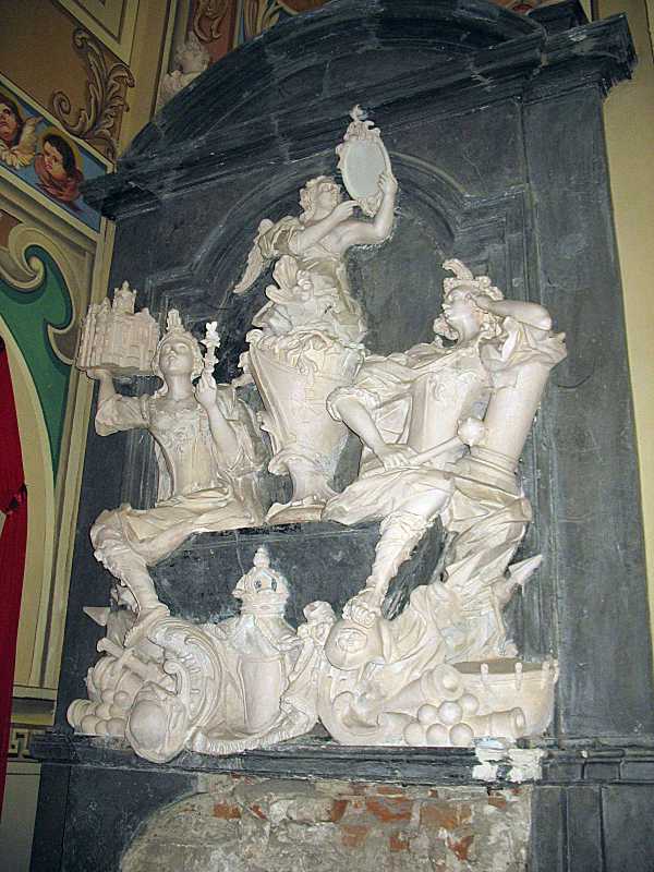 Надгробок 1 Розмір зображення: 600:800 піксел Фото Зенона Боровця і Богдана Тхора, 1 вересня 2012 р. Вкладені елементи Верхня постать ангела Ліва постать жінки з моделлю церкви Права постать з булавою Ліва половина арматури Права половина арматури