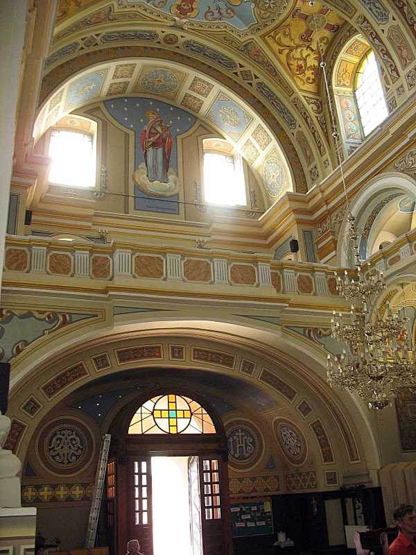 2012 р. Інтер’єр з видом на хори та вхідРозмір зображення: 600:800 піксел Фото Зенона Боровця і Богдана Тхора, 1 вересня 2012 р. |