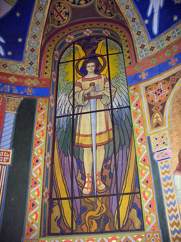 Архангел Михаїл Розмір зображення: 600:800 піксел Вітраж. Фото Зенона Боровця і Богдана Тхора, 20 серпня 2006 р. Попередня сторінка | Вище | Наступна сторінка