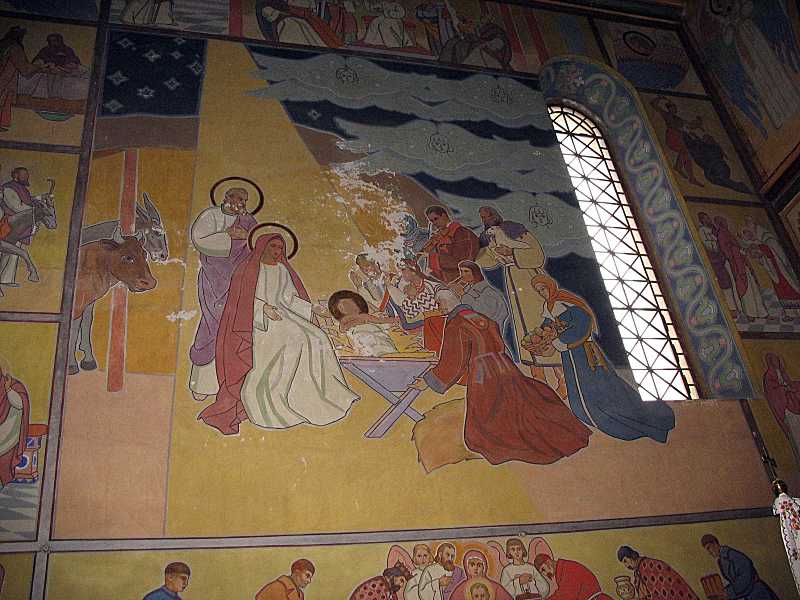 Стінопис «Різдво Христове»Розмір зображення: 800:600 піксел Нижче – композиція «Поклоніння волхвів». Фото Зенона Боровця і Богдана Тхора, 20 серпня 2006 р. |