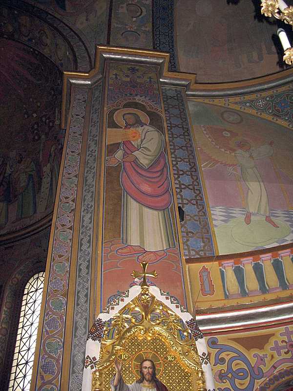 Стінопис «Серце Ісусове» (?)Розмір зображення: 600:800 піксел Фото Зенона Боровця і Богдана Тхора, 20 серпня 2006 р. Композиція знаходиться на західній площині південно-східного підкупольного стовпа. |