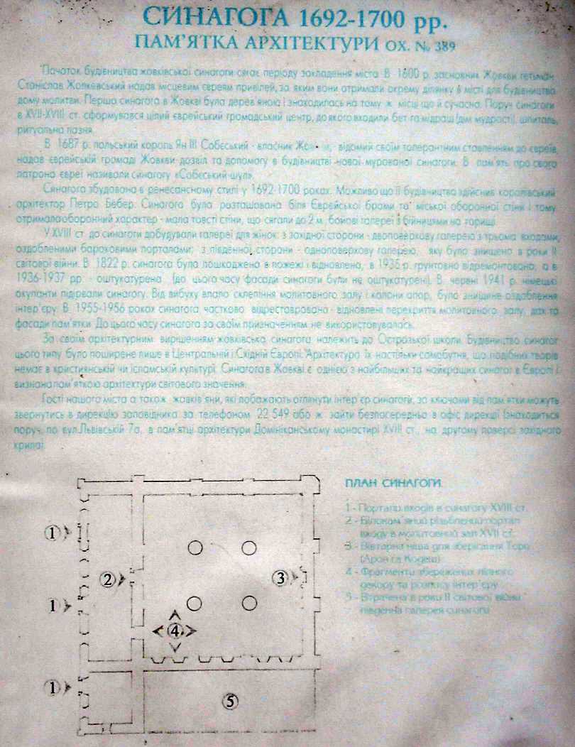 2006 р. Опис синагоги Розмір зображення: 810:1052 піксел Фото Зенона Боровця і Богдана Тхора, 8 серпня 2006 р. Попередня сторінка | Вище | Наступна сторінка