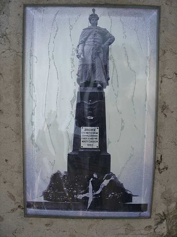 Копія фото пам’ятника Я. СобеськомуРозмір зображення: 600:800 піксел Фото Зенона Боровця і Богдана Тхора, 1 вересня 2012 р. Напис (польською мовою): «Яну 3-у, польському королю, захиснику [польського] народу і християнства – місто Жовква, 1903 р.». |