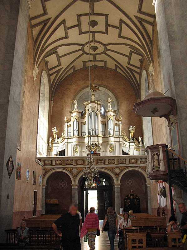 2012 р. Інтер’єр з видом на орган, хори та вхідРозмір зображення: 600:800 піксел Фото Зенона Боровця і Богдана Тхора, 1 вересня 2012 р. |