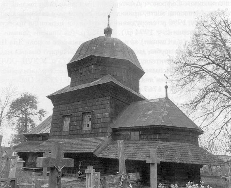 Розташована на околиці села на цвинтарі в передмісті Винники. Як свідчить різьблений напис на балці на хорах, збудована старанням пароха Йосифа Кирницького і його дружини Ірини та побожних парохіян у 1705 pp. (деякі джерела неправильно датують її 1711 p.). Будівля дерев’яна, тризрубна, одноверха. Потужний зруб нави вкритий шоломовою банею на масивному світловому восьмерику. Бароковий іконостас жовківської школи з іконами 1708 – 1710 pp. належить до кола маляра Івана Рутковича. Поряд з церквою розташована стовпова дерев’яна двоярусна дзвіниця збудована у 1715 р.