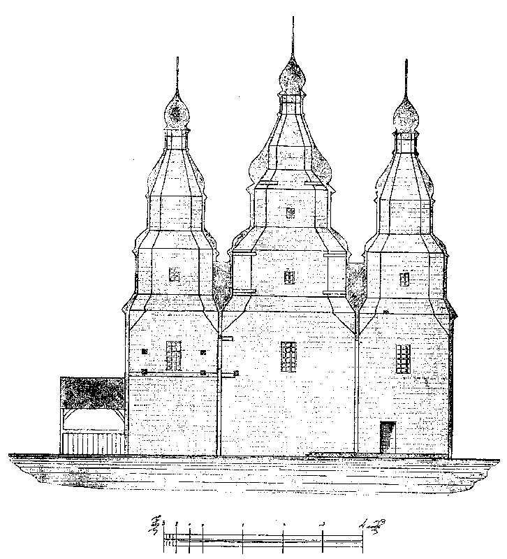 Рис. 41. Разрез Михайловской церкви в с. Чемерисах Волоских Могилевского уезда Розмір зображення: 726:800 піксел Попередня сторінка | Вище | Наступна сторінка