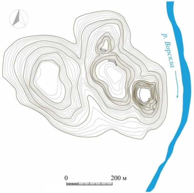 Велике городищеРозмір зображення: 620:616 піксел План Великого городища і посаду Із книги: Осадчий Є. М. Літописні міста Південної Сіверщини. – Харків: 2023 р., с. 150. |
