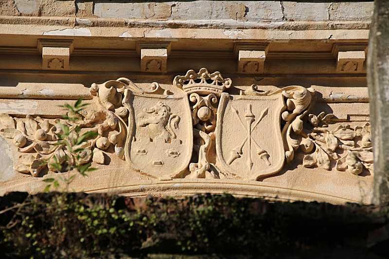 Щити з гербами над балконним вікномРозмір зображення: 800:533 піксел Фото Зенона Боровця і Богдана Тхора, 17 липня 2016 р. |
